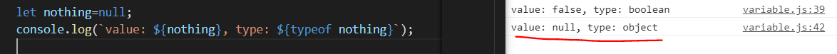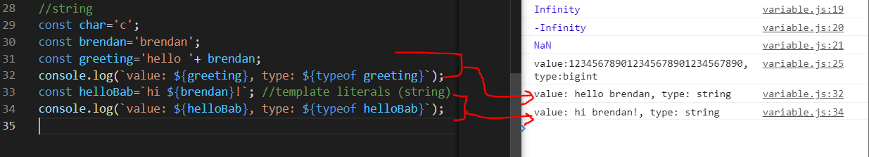 console.log(`value: ${helloBab}, type: ${typeof helloBab}`);