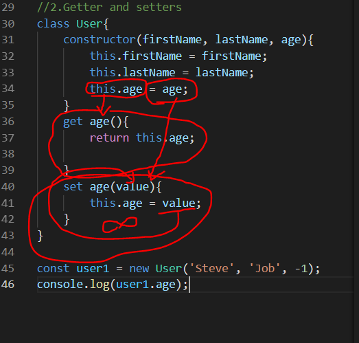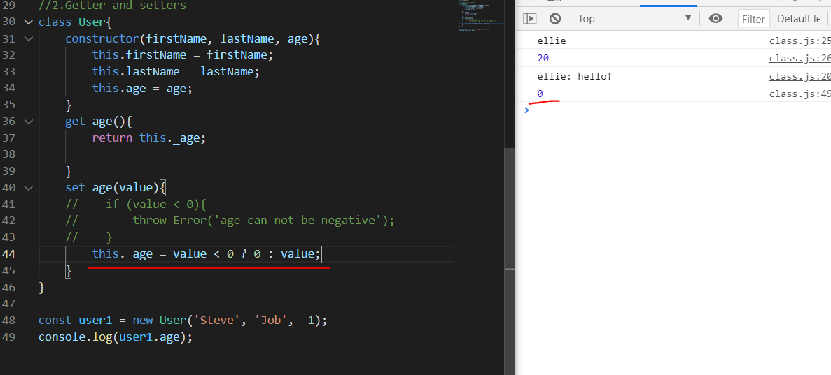 console.log(user1.age); 이것 처럼 .age라고 호출하거나