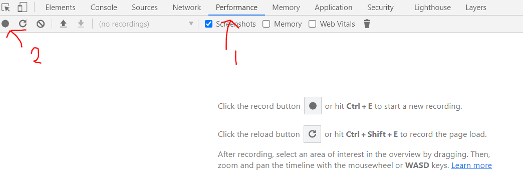 Performance를 클릭해서 Record를 클릭하고