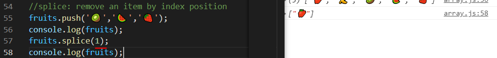fruits.splice(1); 이렇게 하게되면 인덱스1부터 뒤에 모두 지워진다.