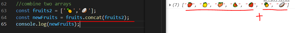 기존 배열과 추가된 배열이 합해져서 새로운 배열(newFruits)을 만든다.