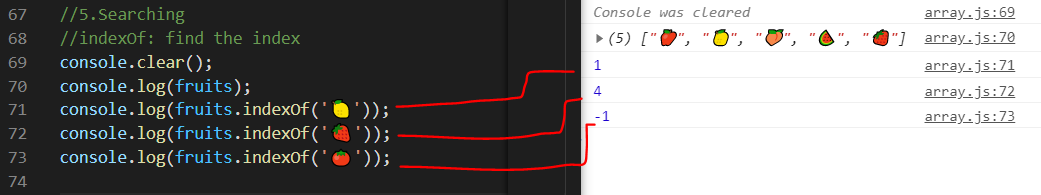 indexOf는 앞에서부터 찾다가 그 값을 만나면 리턴해줌.