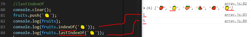 반대로 lastIndexOf는 뒤에서 부터 찾아서 값을 출력해줌.