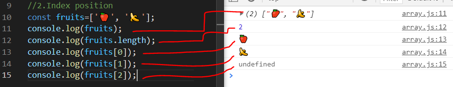 배열에 값이 없으면 ([2]) undefined로 출력.