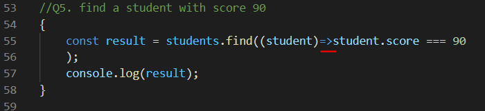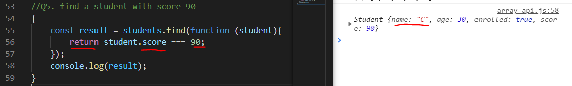 콜백함수를 사용해서 score가 90인 student를 찾으면 리턴되게 작성한다.