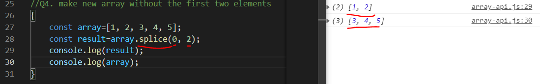 result에는 지워지는 값이 리턴되고, array, 배열 자체에는 3,4,5만 남게된다.