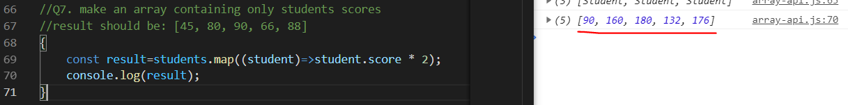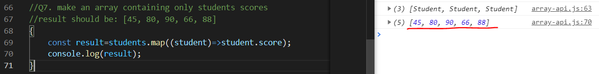 여기에서는 student를 student.score로 변환하여 score값만 출력.