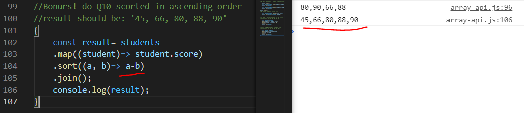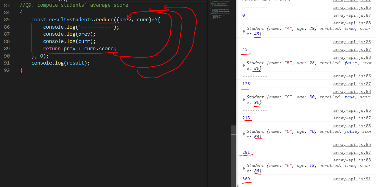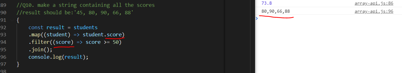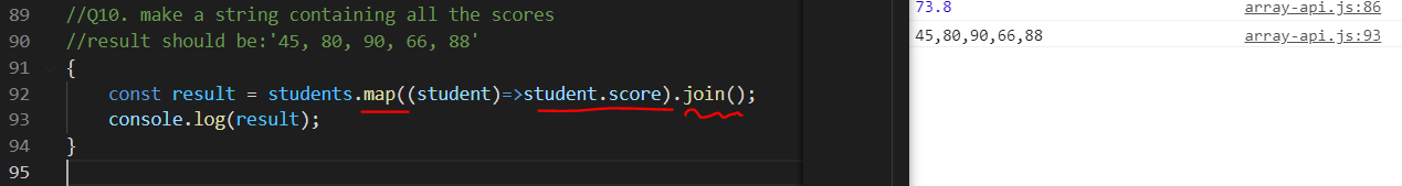 map으로 배열을 student의 score로 변환한 후, join으로 스트링 값으로 바꿔준다.