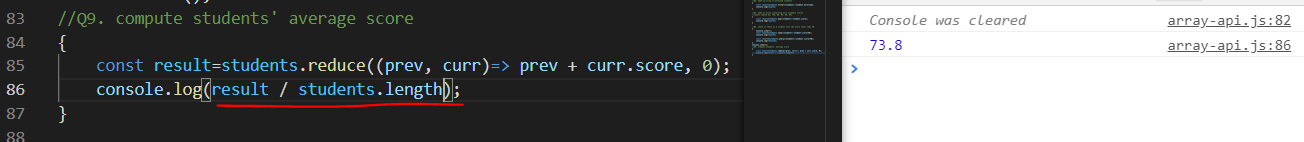 평균값을 구해야 하기 때문에 결과값(result)에서 나누기 students의 갯수를 해준다.